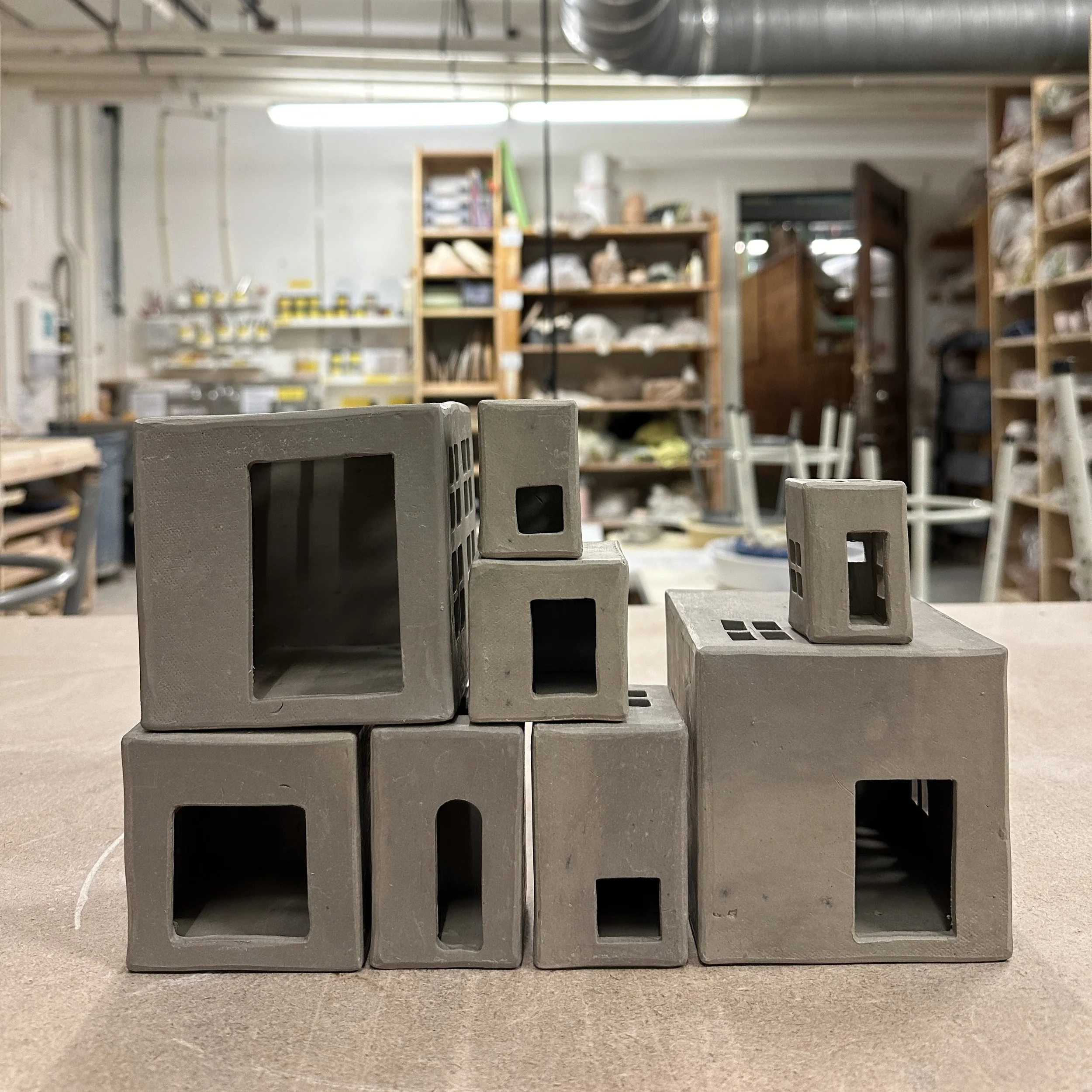 These started when I began the obsession with creating paths of light in the ceramic buildings I was working on. I enjoy that these are a smaller scale than the actual buildings I was creating and I was looking to open them up more to give them more of a viewing window. You can hold these and shift where you are to see how the light changes in them.